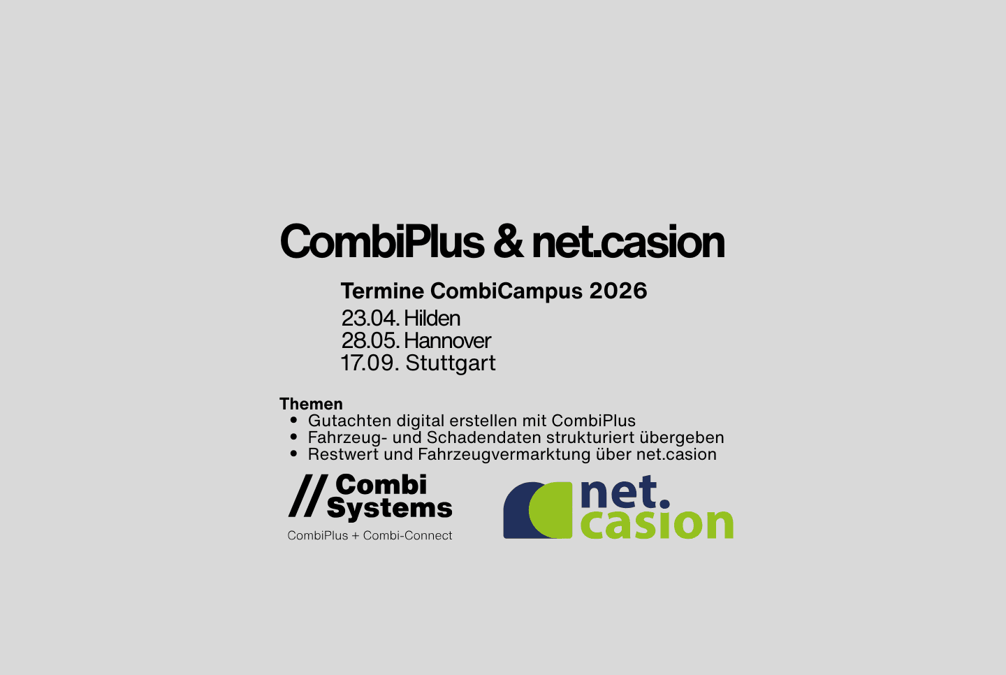 CombiCampus 2026: CombiPlus und net.casion – gemeinsam für digitale Prozesse im Kfz-Schadenmanagement